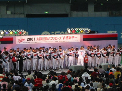 最後は選手一同が整列。退場の際にスタンドにサインボールをプレゼント。数が少ないので、やはりGETできませんでした。