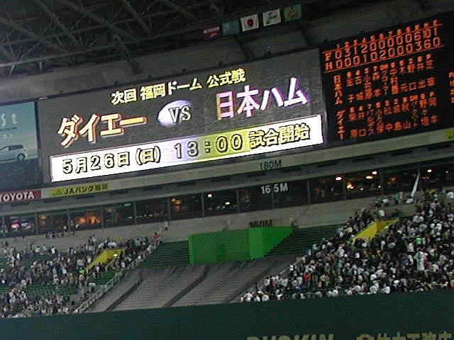 応援むなしく負けてしまう。日本ハム・木元が3安打3打点1ホームランの活躍。あと一打のところで松中がブレーキだった。