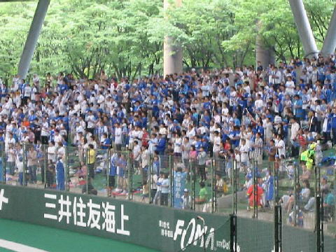 展開的に空いてきた内野席に移動。「小関コール」しているのを内野から撮影。
