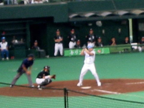 距離が遠くてぼけてしまってますが、構えでわかりますね。カブレラ選手です。